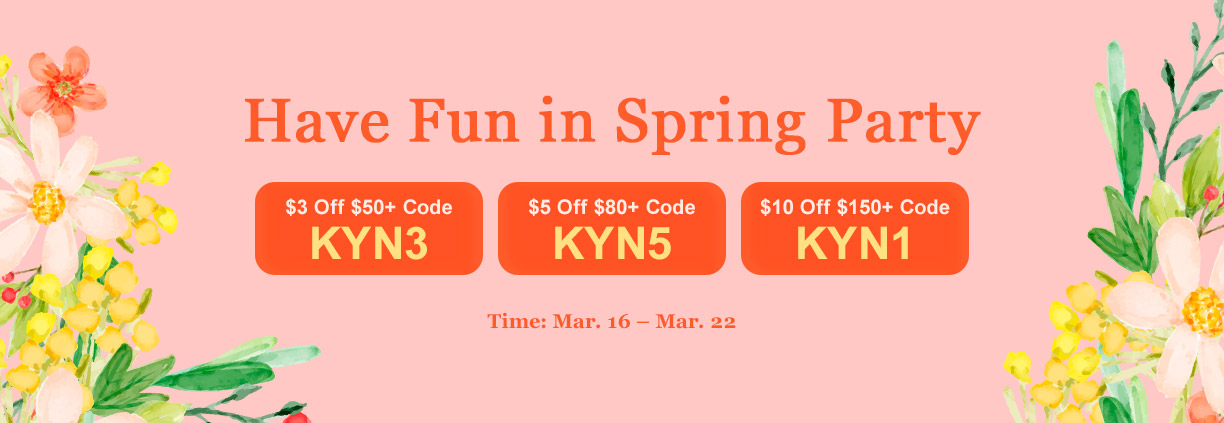 Three cash coupon codes given:$3 off code "KYN3" for $50+ orders.$5 off code "KYN5" for $80+ orders.$10 off code "KYN1" for $150+ orders.