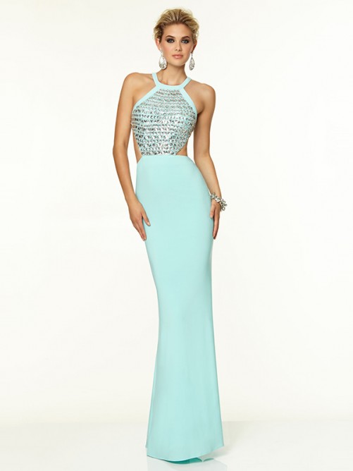 | Title | Sheath/Column Sleeveless Crystal Halter Satin Floor-Length Dresses | ||||